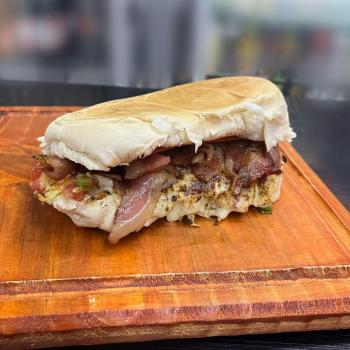 X Frango Burguer Cheddar Egg Bacon Salada